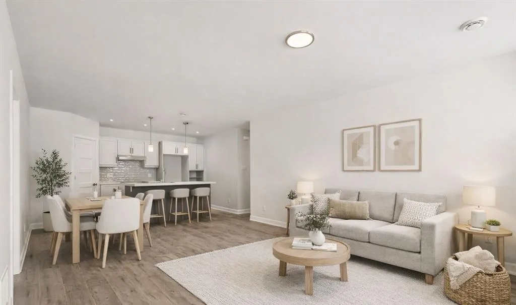 The open-concept layout provides a spacious living and dining area connected to a modern kitchen complete with included appliances. All three bedrooms are generously sized with ample closet space, offering flexibility for families, guests, or a dedicated home office.